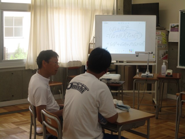 7月1日(火) 3年生(数学「根号をふくむ式のいろいろな計算」)【進んで学ぶ子】 公開日 2025/07/01 更新日 2025/07/01 できごと 3年生の数学は根号をふくむ式のいろいろな計算の学習でした。一問一問解き方を確認しながら集中して計算を進めていました。