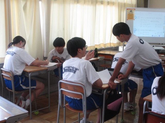 2年生の数学は連立方程式の学習でした。先生に質問したり、友達と解き方を教え合ったりしながら、一生懸命問題に取り組んでいました。