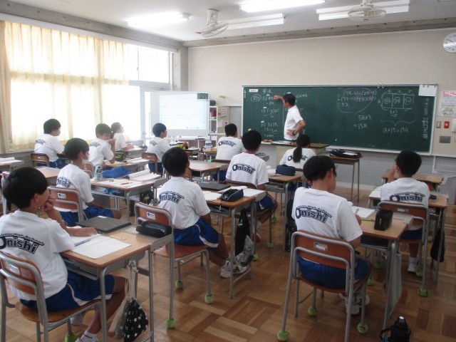 1年生の数学は1次式と数の乗法・除法の学習でした。これまでの学習を踏まえて、今日の課題を着実にこなしていました。1年生、集中して頑張っています。