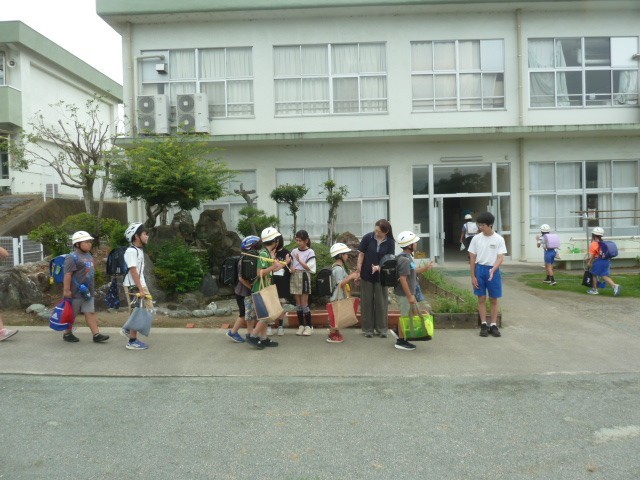 鬼石連携型小中一貫校では、毎月鬼石北小・鬼石小であいさつ運動を実施しています。中学生は、自分の母校で小学生と一緒にあいさつ運動に参加します。また、地域住民の方や民生委員・児童委員の方々にも来校いただいて、行っています。「おはよう。」「おはようございます。」今日も朝から元気なあいさつが交わされています。(写真は、鬼石北小でのあいさつ運動の様子です。)