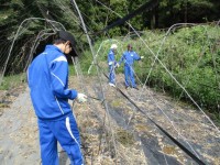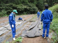 畑に敷いてあった防草シートを剥がす作業を行っていました。雑草を防ぐために必要な道...