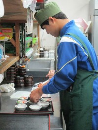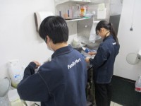 今日は午後からの勤務でした。男子は厨房で小鉢用の皿を並べていました。女子は館内の...