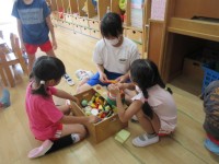 午前中は園庭で運動会の練習をしていたようですが、暑さのために室内に戻り、自由遊び...