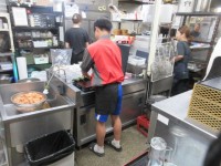 こちらはバックヤードで作業中です。ホットスナックを入れて販売するための容器を準備...
