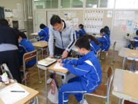 3年生の音楽は卒業式で歌う式歌の練習でした。今日は、当日の隊形や動きなどを、昨年...