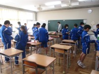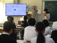 1年生の英語は話す活動でした。今日は、これまで学習した様々な表現を活用して、ペア...