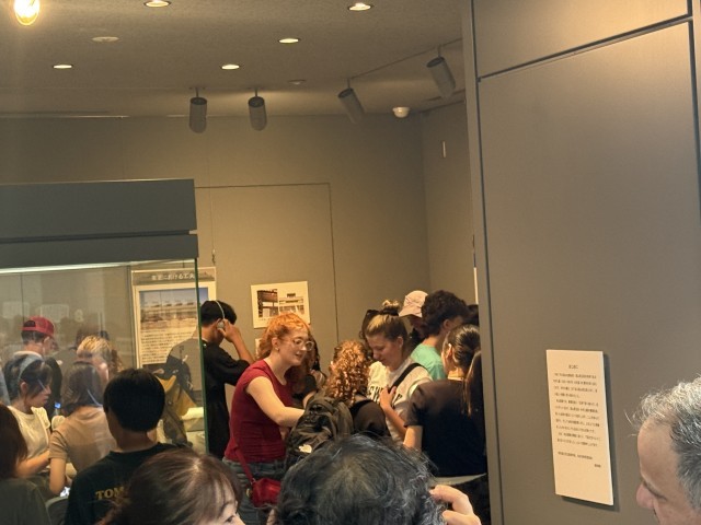 その後、歴史館を訪れ、古墳や養蚕等の藤岡市の歴史について学びました。職員による英語の解説を聞いた後、質問をしている生徒も見られました。