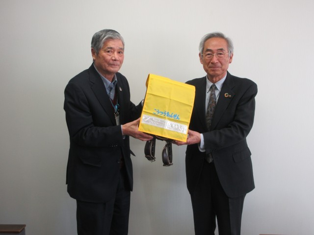 JAたのふじ様より小学校の新1年生にランドセルカバーを、中学校の新1年生にクリアファイルをいただきました。