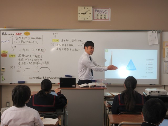 小野中学校では、落ち着いた雰囲気の中、タブレットを上手に活用して、生徒の主体性を引き出している授業が展開されていました。