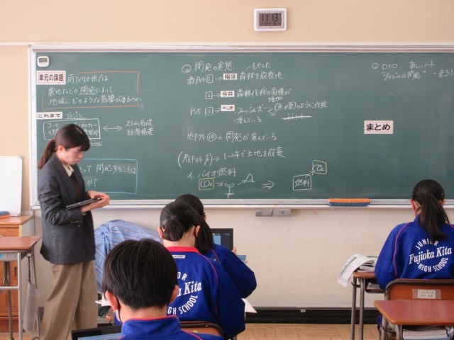 また、北中学校では、学習環境がしっかりと整った中、一人一人が集中して授業に取り組む様子が見られました。