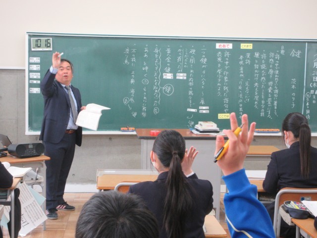 鬼石中学校では、生徒同士、また、先生と生徒の人間関係も良好でよい雰囲気の中、生徒が意欲的に授業に取り組む姿が見られました。