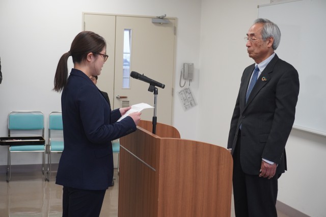 校長会副会長からはご祝辞をいただき、「自分の心持ち一つで未来が変わる。指導法やスキルをアップデートしながら前向きに頑張っていってほしい」とお話をいただきました。