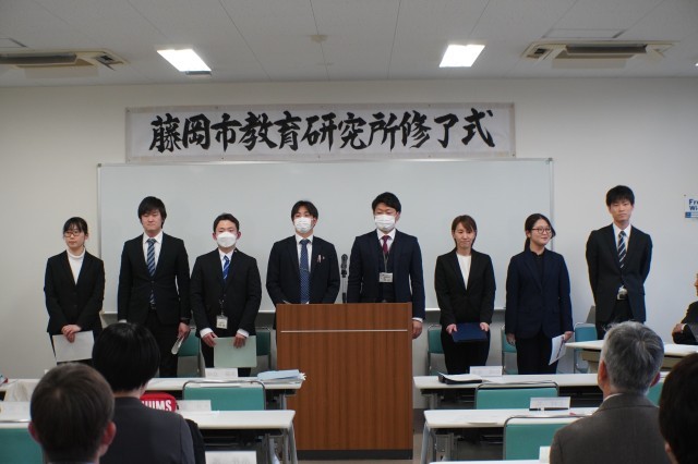 教育長から、「これからも研究所で培った視点で学校生活の質の向上に励んでほしい。その実践が『学校が研究的に進む』ということであり、子供たちに還っていく」とエールが送られました。