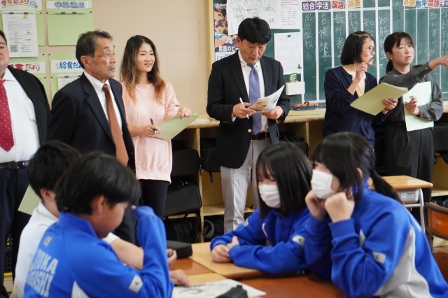 授業参観に先立ち、校長よりチェックシートの活用方法について説明があり、委員の皆さんは熱心に授業の様子を参観されていました。その後、生徒の学びに向かう姿を踏まえ、各授業の良さについて意見が出されました。