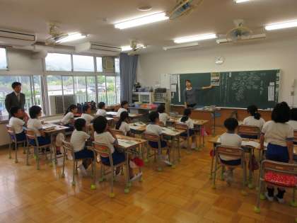 田中教育長から「どの教室に行っても学びのつながりを意識した板書がされており、また子どもたちと先生の人間関係がとても良いことがよく分かる。」とのお話がありました。