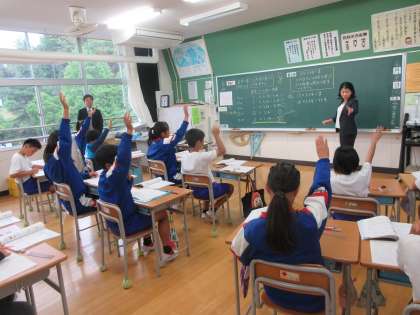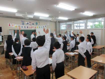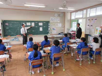 その後の授業参観では、どの教室にもめあてがしっかりと提示され、ICTを使って子どもの興味関心を高め、つなぎ教材を活用して子どもの主体的な取組を促す授業が展開されていました。子どもたちは、集中して授業に取り組み、先生の発問に積極的に手を挙げ、元気に自分の考えを発表することができていました。
