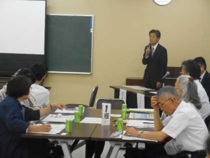 田中教育長からは「どんな理由があってもいじめは許されないことである。地域の力も借りて、皆で考えていきたい。」、学校運営協議会の岩崎会長からは「いじめ問題解決に向けた環境を整えていくことが重要である」というお話をいただきました。その後、北中の黒澤校長先生から、いじめ防止基本方針に基づいて校区としてのいじめ問題への取組についての説明、市教委からは、本懇談会の協議テーマ「感じ方が違う敏感な特性をもつ子どもたち(HSC)」についての説明がありました。