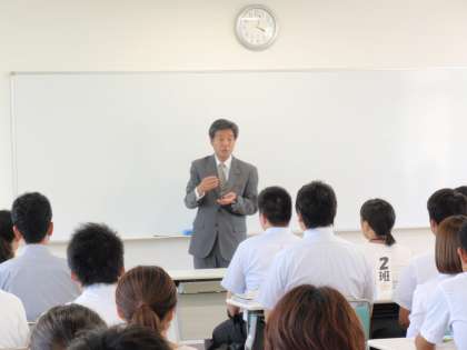 はじめに、田中教育長より、授業づくりでは、つなぎ教材とネームプレートを活用することが大切であること。また、子どもたちの気持ちに寄り添った言葉を返すことのできる「話のわかる先生」になってほしい、と話がありました。