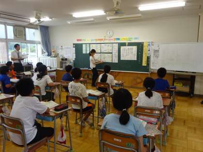美九里西小学校の計画訪問があり、中学校区内の先生方が多く参観され、東連携型小中一貫校としての授業の在り方を学び合う機会となりました。授業では、子どもたちと先生方のよい人間関係のもと、既習事項を生かし学習の中心場面で自力解決していく小中一貫教育の授業が展開されていました。また、どの教室に行っても「学びのつながり」を意識した板書がされていました。