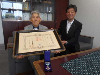 7月22日(月)叙勲の伝達 公開日 2019/07/22 更新日 2019/07/22 その他 元美九里東小学校長 小林 讓先生が叙勲を受けられ、勲記等が届いたので、田中教育長が伝達を行いました。 小林先生は藤岡市や旧多野郡の学校での優れた学校経営に対する功績により今回の栄典となりました。 大変おめでとうございます。