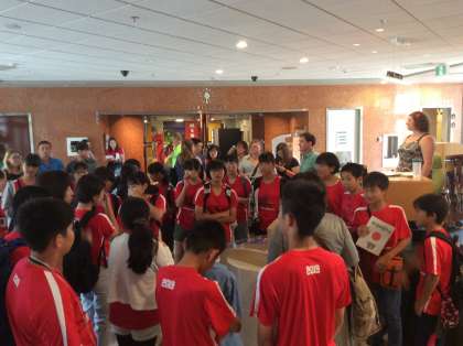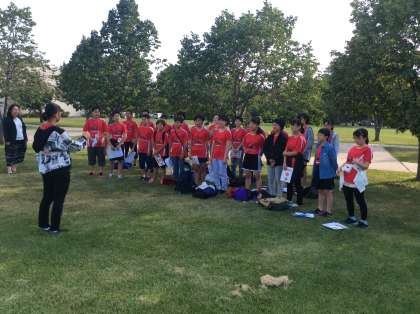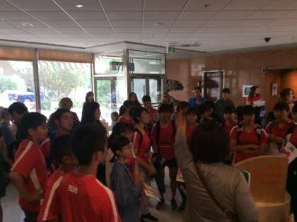 8月3日(土)カナダ・ホームステイ2日目No.3 公開日 2019/08/04 更新日 2019/08/04 カナダホームステイ 歓迎会が行われるロイヤルサスカチュワンミュージアムに集合しました。子どもたちはおそろいのシャツを着て、ホストファミリーのペアの子どもたちと一緒にきました。子どもたちは「ぐっすり眠れました」とみんな元気です。 歓迎会の前に「君が代」「O Canada」「もみじ」の練習をしました。外に出て練習したのですが、学習センターで練習の時と同じように大きな声で歌えました。