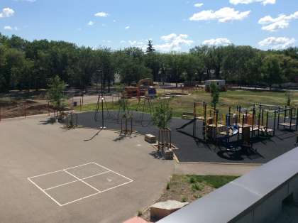 外でも授業ができるように、スペースが完備されています。