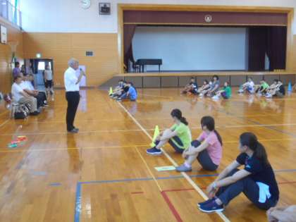 藤岡第一小の開会行事では、関口教育委員から、「先生方のおかげで藤岡市はコミュニティ・スクールを基盤とした小中一貫教育が進んでおり、大変ありがたい。今日は市内の先生方が講師なので、児童の体力向上、先生方の授業改善のために学び合える貴重な時間としてほしい。ただし、大変暑いので、くれぐれも熱中症やけがには気をつけていただきたい。」とのあいさつがありました。
