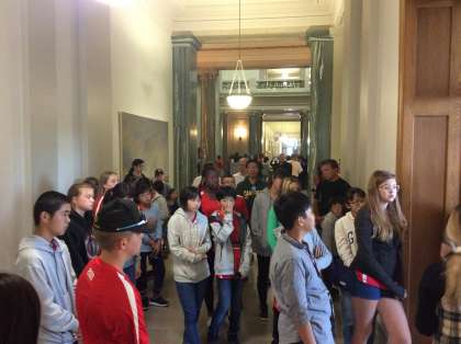 8月7日(水)カナダ・ホームステイ6日目No.4 公開日 2019/08/09 更新日 2019/08/09 カナダホームステイ 議事堂での様子です。 図書室を案内されました。 日本からお客さんが来るということで、桜の飾りを準備してくれました。