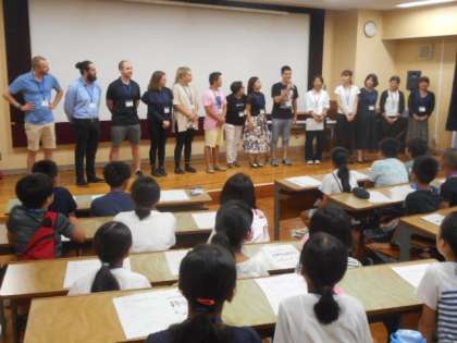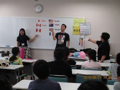 その後、3つのグループに分かれ、9人のALTと5人の日本人教師によるレッスンが行われました。様々な活動に取り組む子どもたちの顔は皆、笑顔が絶えることなく、初めて出会った友達とも仲良く英語で関わっていました。明日は今日よりもオールイングリッシュを楽しむ子どもたちに会えることを楽しみにしています。