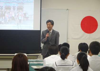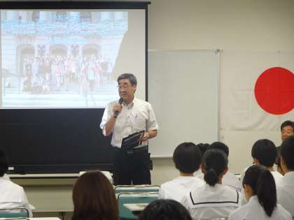 その後、派遣生徒、引率教員から体験報告がありました。カナダでの生活における驚きや発見、初めての体験をやり遂げた充実感や喜び、家族のように温かく接してくれたホストファミリーへの感謝の気持ちなど、一人一人がかけがえのない思い出を語っていました。また、この経験が単なる思い出ではなく、夢をもって前進し、活躍する将来に向けての新たな出発点であるということを確信することができました。