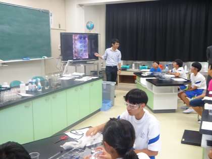 授業の後に行われた全体会においては、田中教育長より「小中一貫教育とは一貫した目標、一貫した方法で行う教育である。一貫した方法として、今日もつなぎ教材を活用した授業がしっかりと行われており、生徒が安心して授業に取り組む様子が見られた。今後、更に一貫した目標として、東連携型小中一貫校の目指す子ども像や教科の重点等を意識した授業を展開して欲しい。」という話がありました。
