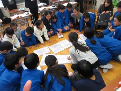 公開授業は、「考え、議論する道徳」の実現に向けて、先生方が教具・教材を工夫して児童の思いや考えを「見える化」し、学びのつながりを意識した活動を展開したり活発な意見交流を通して考えを深めることができる活動を設定したりしていました。