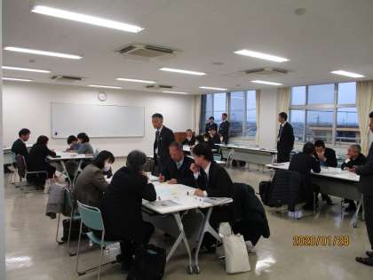 その後、推進教員から各一貫校のコミュニティ・スクールでの取組や、成果と課題について発表しました。また、小中一貫教育の授業の理解してもらうための取組や先生方の困り感を把握して、地域学校協働本部にどのようにつなげるための取組などについて、話し合ってもらいました。