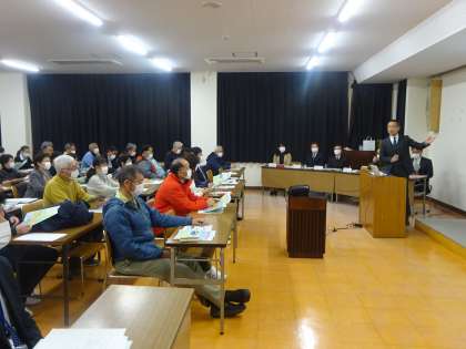 今年度は、すべての中学校区に学校運営協議会を設置した「コミュニティ・スクール」がスタートしています。今回は、東中校区にお住いの地域の皆様を対象に説明会が行われました。まず、学校運営協議会委員長からは、「地域の皆様と各団体の代表の方々と一緒に進めていくことが大切です。今日はコミュニティ・スクールについての理解をさらに深めていきましょう。」と話があり、続いて教育長からは、「とにかく子どもに関わっていってほしい。無理のない範囲でできる人ができることをできるときにそういうスタンスで子どもたちに関わりながら、緩やかなネットワークを作っていってほしい。」と話がありました。その後、コミュニティ・スクールの導入の背景や仕組み、学校や地域での取組、ボランティアの募集などについての説明がありました。