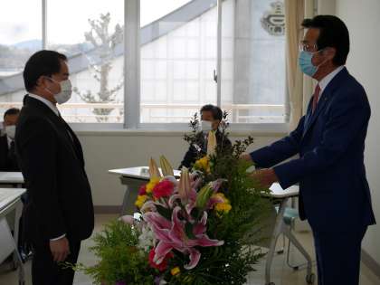 3月31日付けで退職された先生方をお迎えし、退職辞令交付式が行われました。まず、教育長から退職辞令が渡され、長年にわたる先生方の多大なる功績に感謝の言葉がありました。次に市長から、代表者に感謝状が贈られ、今までのご苦労に対してのねぎらいや新たな立場で藤岡市の子どもたちのためにご尽力頂けるとありがたいというお言葉をいただきました。最後に退職者代表の謝辞があり、時代の変化を感じながら目の前にいる子どもたちのための教育に邁進してきた、これからも藤岡の子どもたちを笑顔、やる気、希望でいっぱいにしてほしいという思いをお話しいただきました。