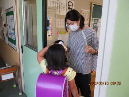 玄関で手指消毒をした後、教室で検温をしてしっかり検温カードを提出していました。その後は静かに授業準備をしており、学びに向かう姿勢が整っており立派でした。