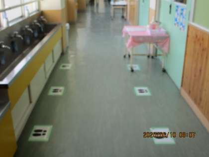鬼石北小学校でも、水道の前には、並ぶときの距離が視覚でわかるように足形を配置するなどしていました。他にも発熱者が出た時の対応方法なども細かく配慮されており、児童の安全安心を第一に考えた先生方の工夫と努力の様子が見られました。