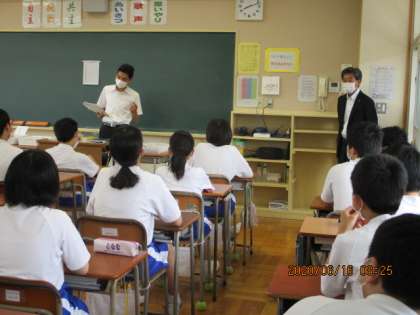 あいさつの後は整然と教室に入り、朝の準備時間や朝の会も大変静かに取り組んでおり、中学生らしさを感じました。