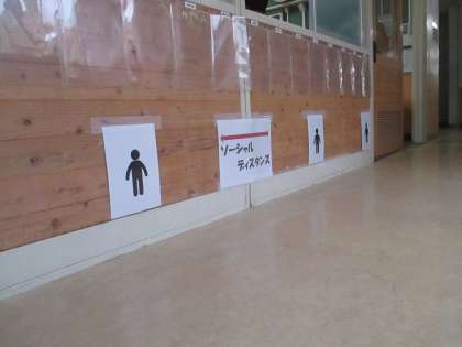 全員登校に慣れ、教室の中にも明るさや元気が戻ってきたようです。手洗いやソーシャルディスタンスといった感染症予防を日常的に心がけた生活が続いている中、校舎1階の廊下には、生徒たちの美術作品が掲示され、ほっと気持ちが安らぐ場もありました。