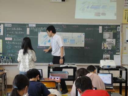 田中教育長からは「授業スタンダードの日常化が着実に進んでいる。」「子どもたちが主体的に考えている授業が見られた。続きを見たくなった。」「子どもたちが考えたり、活動したりしている姿があり、先生が目立っていない授業が『主体的な授業』の一つの姿ではないか。」などの話がありました。