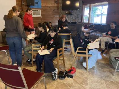 8月5日(月) リジャイナホームステイ キャンプ 夜のアクティビティ2 公開日 2024/08/06 更新日 2024/08/06 カナダホームステイ アクティビティはまだまだ続きます。21時を回りますが、みんな元気で盛り上がっています。生徒たちのパワーを感じます。