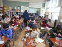 国語?国語です。今日まで何度も国語の授業で話し合いを重ね、みんなが楽しめる方法を考えてきました。ですから、自分たちの運営で、自分たちが準備し、自分たちで始まりました。先生は一切指示を出していません。