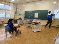 1年生が外国語活動の学習に取り組んでいました。今日は、ALTの先生と一緒に「Here you are 」や「Thank you」のようなあいさつの英語表現を練習しました。子どもたちは笑顔で声に出しなが...