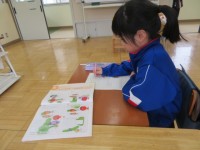 2年生は、「おもちゃランド」をつくり1年生を招待するためにおもちゃをつくっていました。1年生が楽しめるように、丈夫にしたり、楽しい絵を描いたりするなど工夫をしていました。