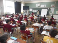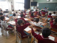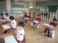 1年生は算数で数の学習をしています。この日は教科書にある絵の数を一つ一つ数えながらブロックと対応させ、そのブロックの数を数字と結び付ける活動に取り組んでいました。具体物を使って確かめることで数の意味を...