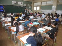 1年1組では中学校での初めての英語の授業。中学校での英語授業のガイダンスをしてもらった後、「英語しりとりゲーム」で小学校の英語活動の復習をしました。一生懸命単語を思い出して、チームで協力しながら英語で...