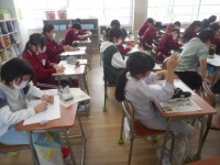 3年生は、虫めがねを正しく使う学習をしていました。虫めがねは目のそばで動かさず、見るもののピントを合う位置に動かすことが分かりました。正しく使う練習ができたので、これからの学習で学校にあるさまざまな自...