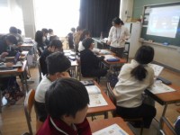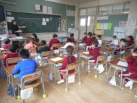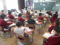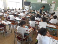 平仮名「つ」「く」に続いて、今日は「し」の勉強です。「つ」のつく言葉を聞かれた1年生は、元気よく手を挙げ、先生から指名されると「しんかんせん」「くつした」などと大きな声で答えることができました。その後...