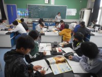 5年生は、話の場面をくわしく聞き取る学習をしていました。登場人物の好きなものを聞き取った後、“What's do you like?”に答えていました。好きな教科は「理科」、好きなスポーツは「ベースボ...