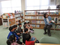 図書司書の来校日です。1年生と2年生が,図書室の利用の仕方を確認し,本をかりました。そして,読み聞かせの時間です。集中してお話を聞いていました。